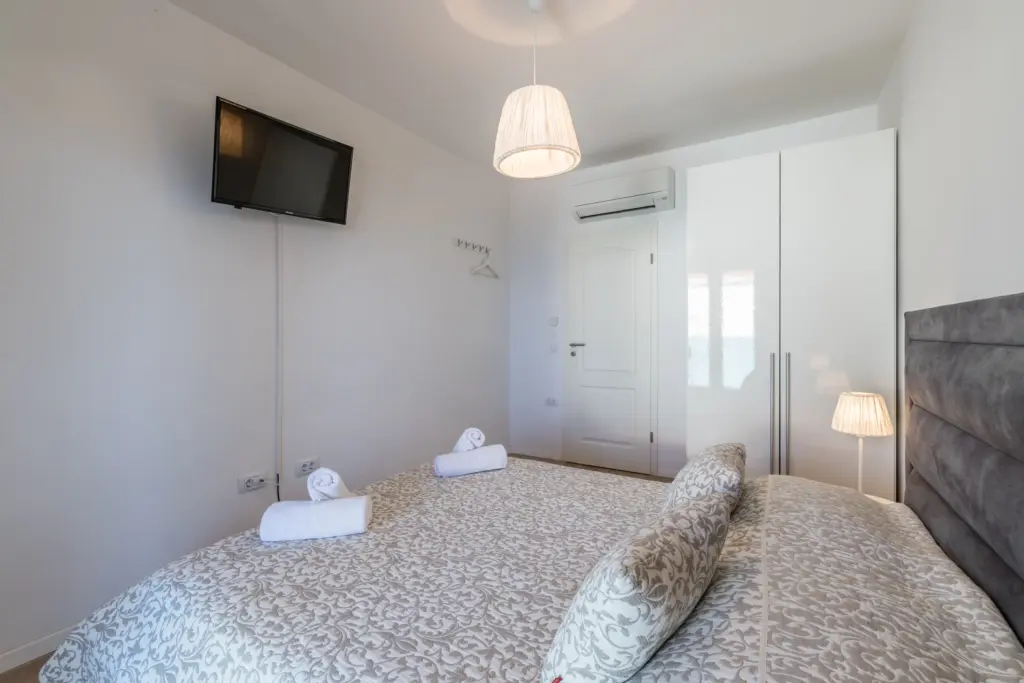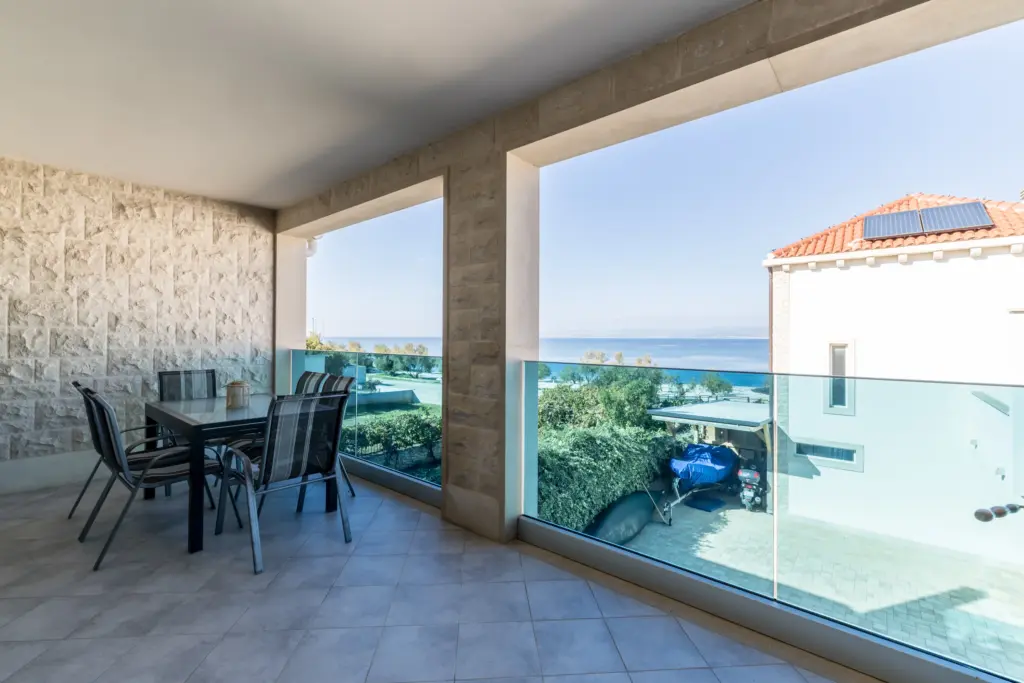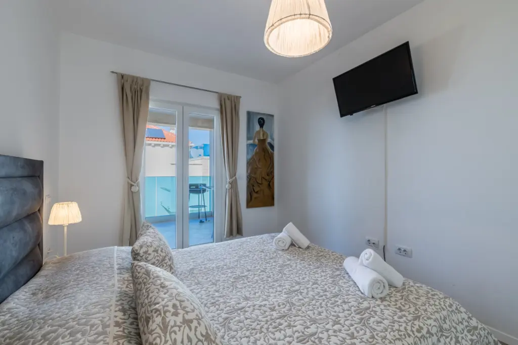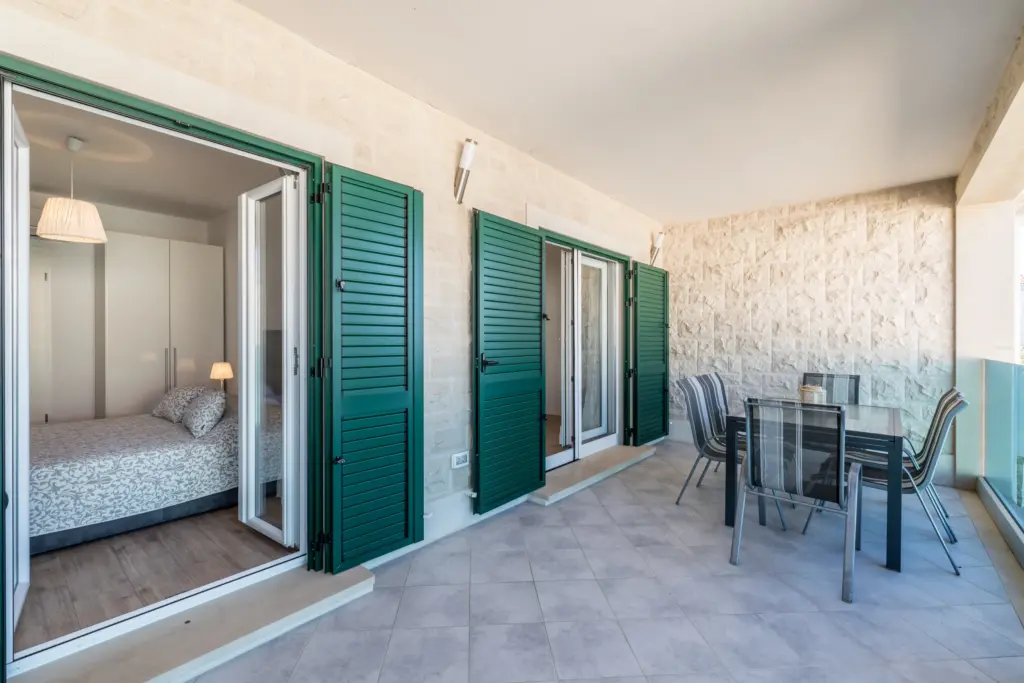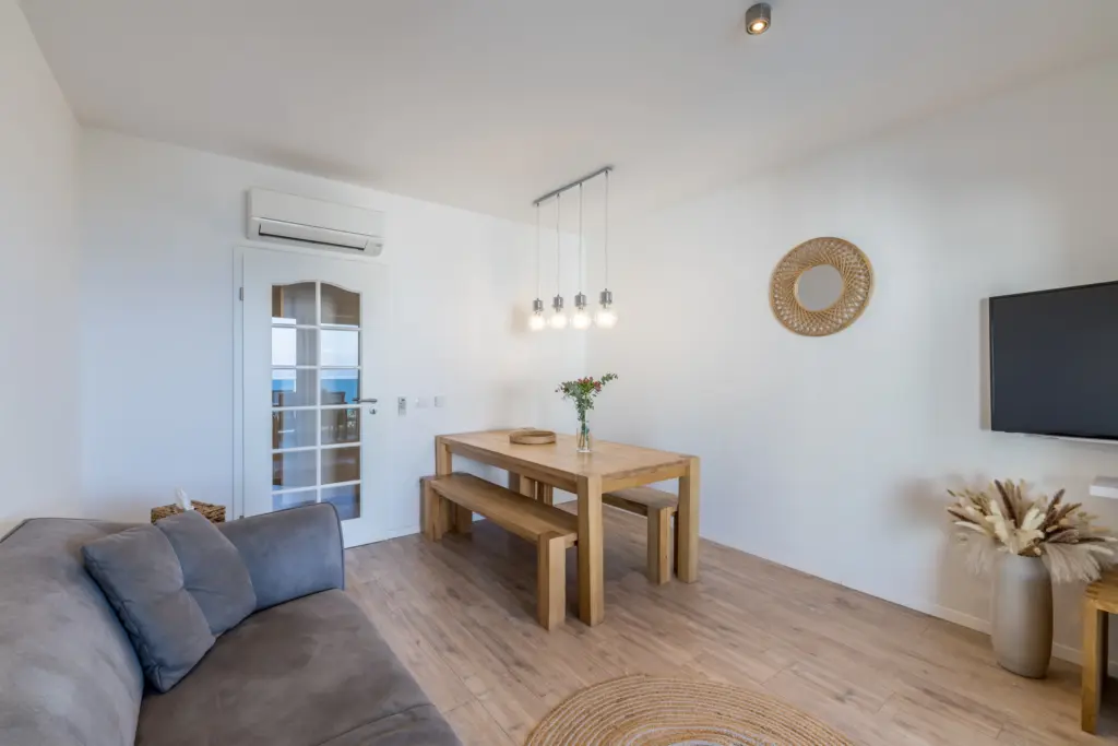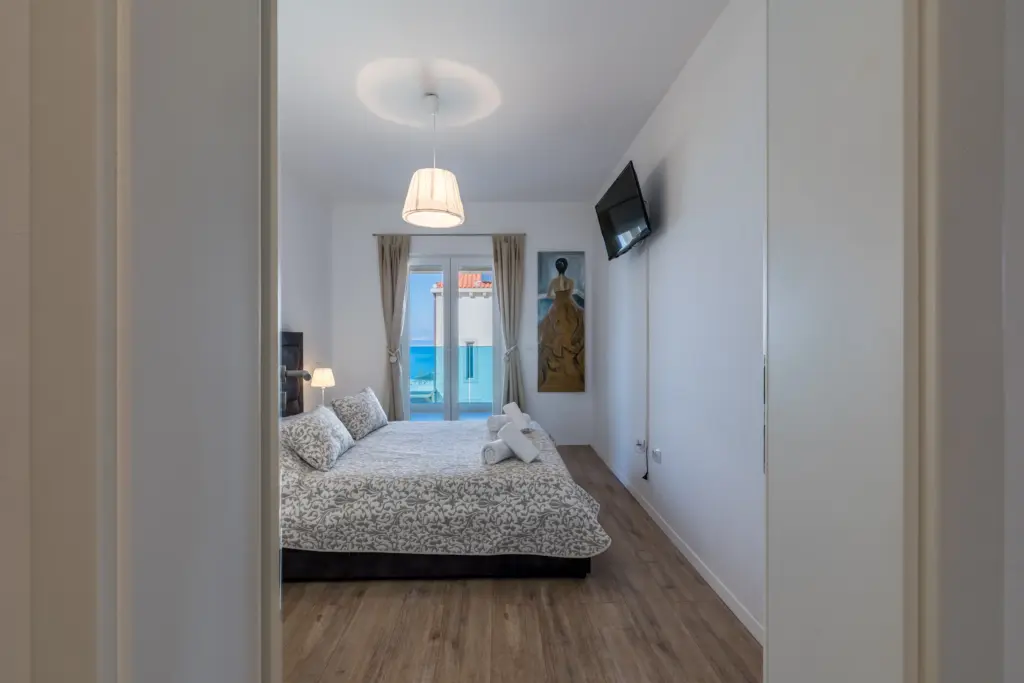Erleben Sie den besonderen Komfort in unserem Sogno Sole II, einem exklusiven Premium-Apartment im ersten Stock. Die großen Fenster und der Balkon schenken Ihnen einen atemberaubenden Blick auf das glitzernde Meer – der perfekte Ort, um den Sonnenaufgang zu genießen. Mit hochwertiger Ausstattung und einem stilvollen Design ist dieses Apartment ideal für Reisende, die das Besondere suchen. Lassen Sie sich von der Kombination aus Luxus und Meeresnähe verzaubern.