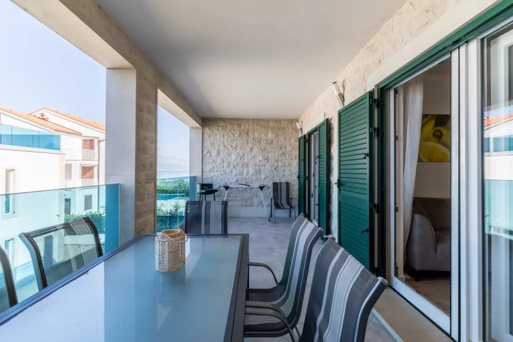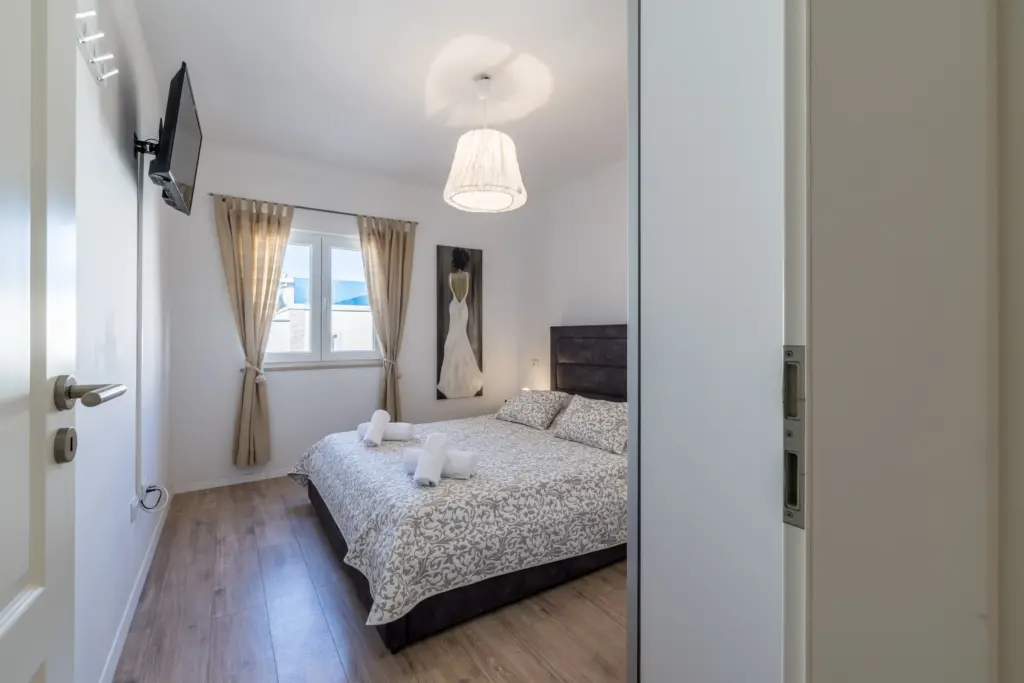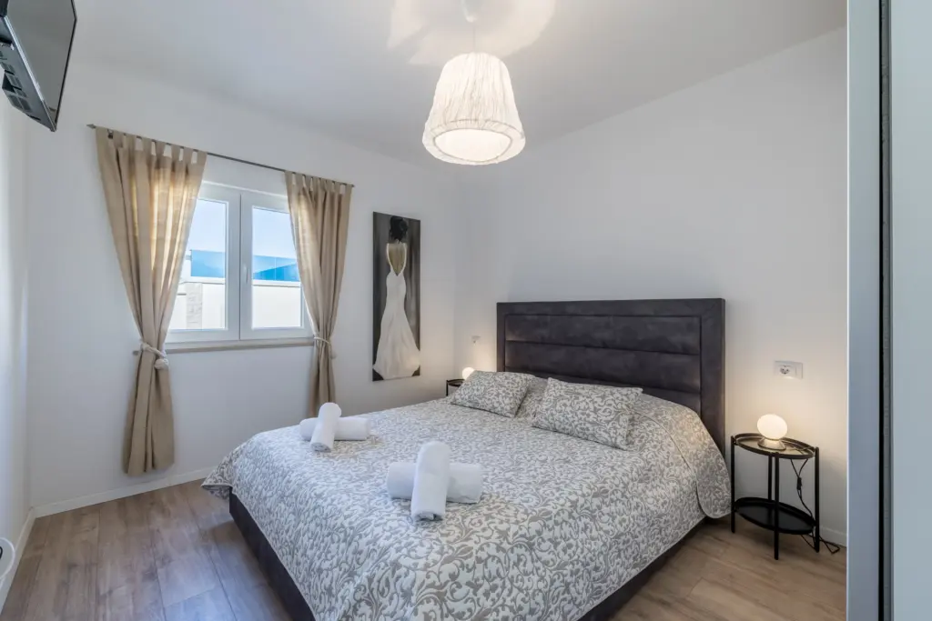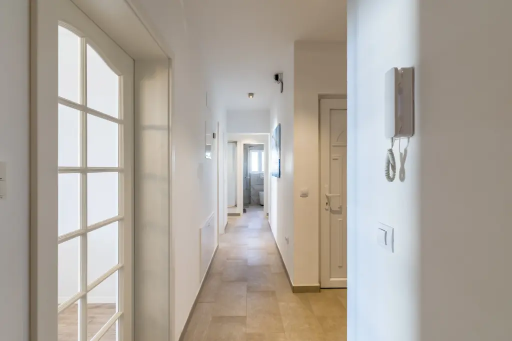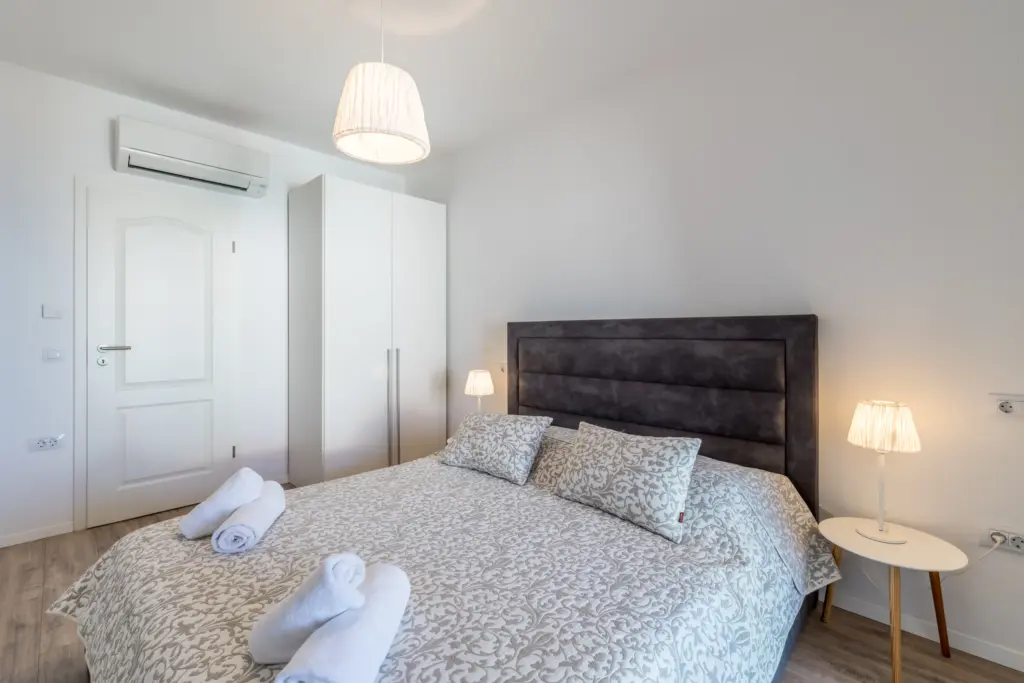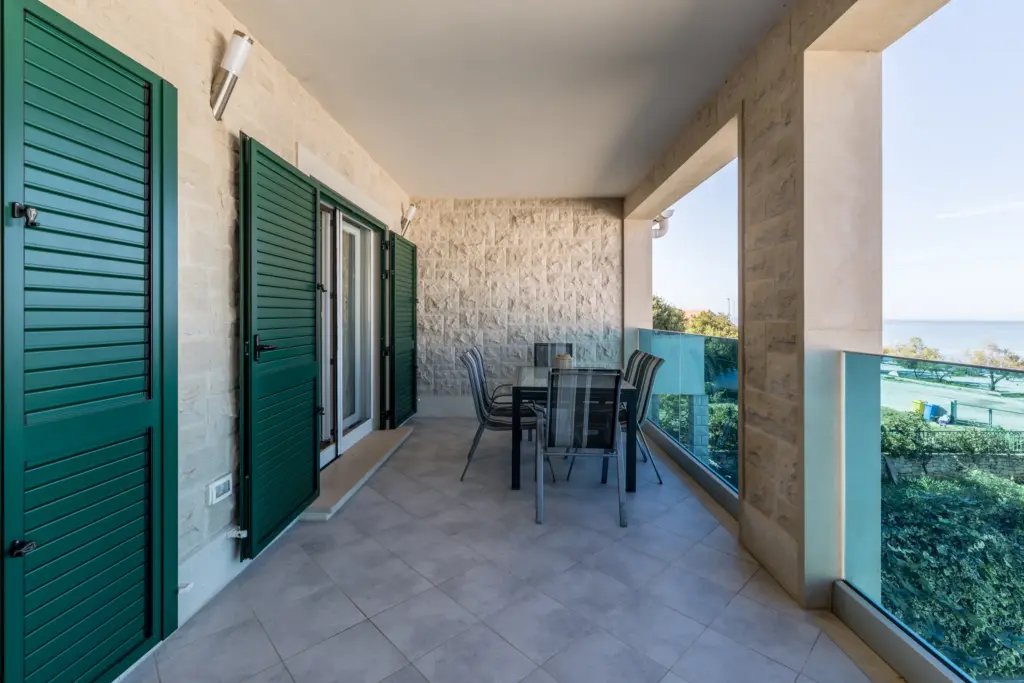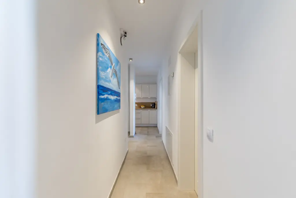 Erleben Sie den besonderen Komfort in unserem Sogno Sole II, einem exklusiven Premium-Apartment im ersten Stock. Die großen Fenster und der Balkon schenken Ihnen einen atemberaubenden Blick auf das glitzernde Meer – der perfekte Ort, um den Sonnenaufgang zu genießen. Mit hochwertiger Ausstattung und einem stilvollen Design ist dieses Apartment ideal für Reisende, die das Besondere suchen. Lassen Sie sich von der Kombination aus Luxus und Meeresnähe verzaubern.